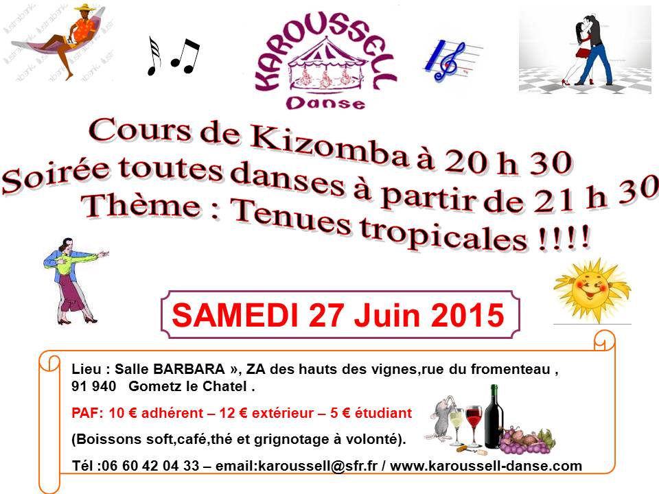 Avec cours de Kizomba à 20h30, suivi d' une soirée toutes danses à 21h30 !!!