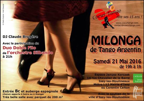 Ne ratez pas les 15 ans de Coeur Tango, samedi 21 mai à partir de 19h.