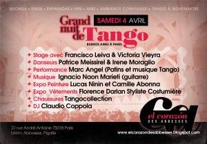 Ces cours auront lieu le 4 avril avant la milonga El Corazon des Abbesses