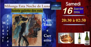 Milonga Esta Noche de Luna est de retour avec sa spécialité "Galette des rois" cette fois, donc le buffet habituel sera remplacé par des galettes et le vin par le cidre pour fêter l'occasion. Bien sûr comme toujours il y aura les boissons softes et les fruits.
