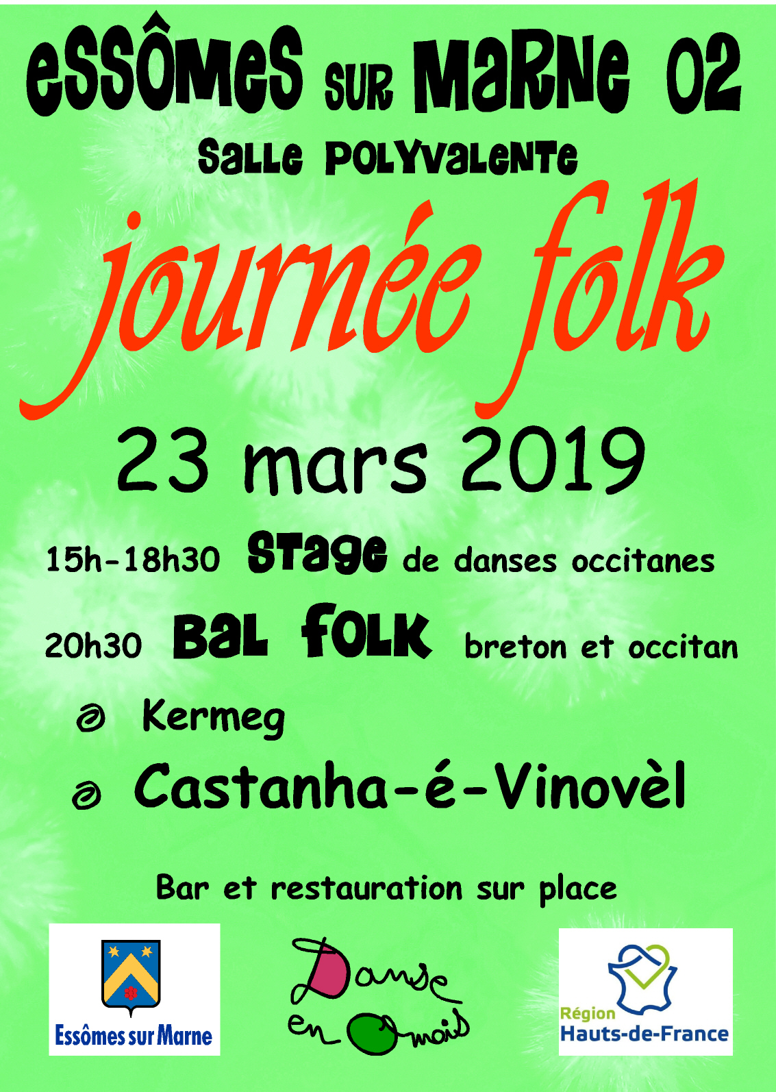 SAMEDI 23 MARS 2019, JOURNEE FOLK près de Château-Thierry : ça approche…Pensez à réserver votre journée !!!