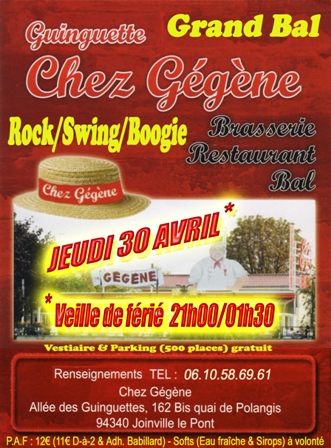 – JEUDI 30 AVRIL * : Rock/Swing/Boogie chez Gégène avec Dj's Jay Cee & Fontana