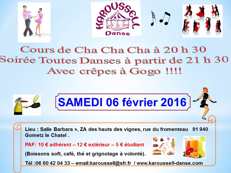 Samedi 06 février soirée toute danse avec cours de cha cha cha à 20h30 !!