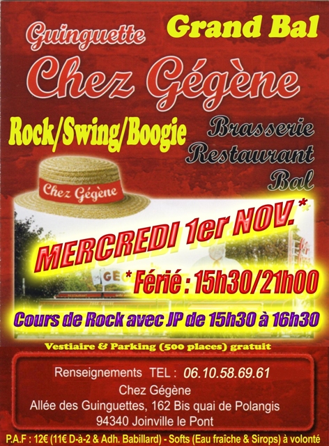 – MERCREDI 1er NOVEMBRE (Férié) * : Après-midi Rock/Swing/Boogie chez GÉGÈNE