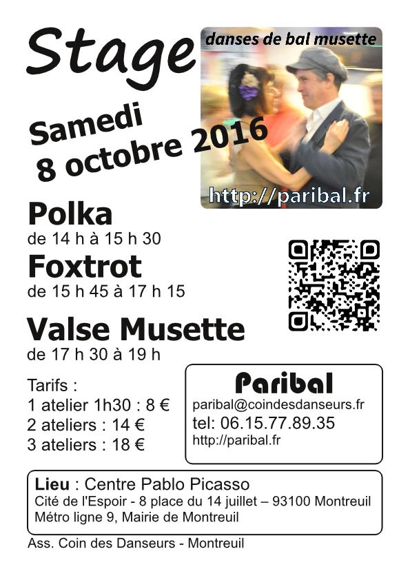Pour préparer votre soirée, vous pourrez aussi suivre le stage de danses de bal musette avec Paribal