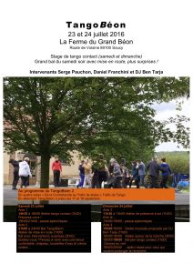 à Soucy (près de Sens) Serge Pauchon, Daniel Franchini et DJ Ben Tarja vous ont concocté deux journées intenses avec un grand bal du samedi soir, une sieste musicale, et un bal jam. Plus de détails en PJ ou www.lafermedugrandbeon.com