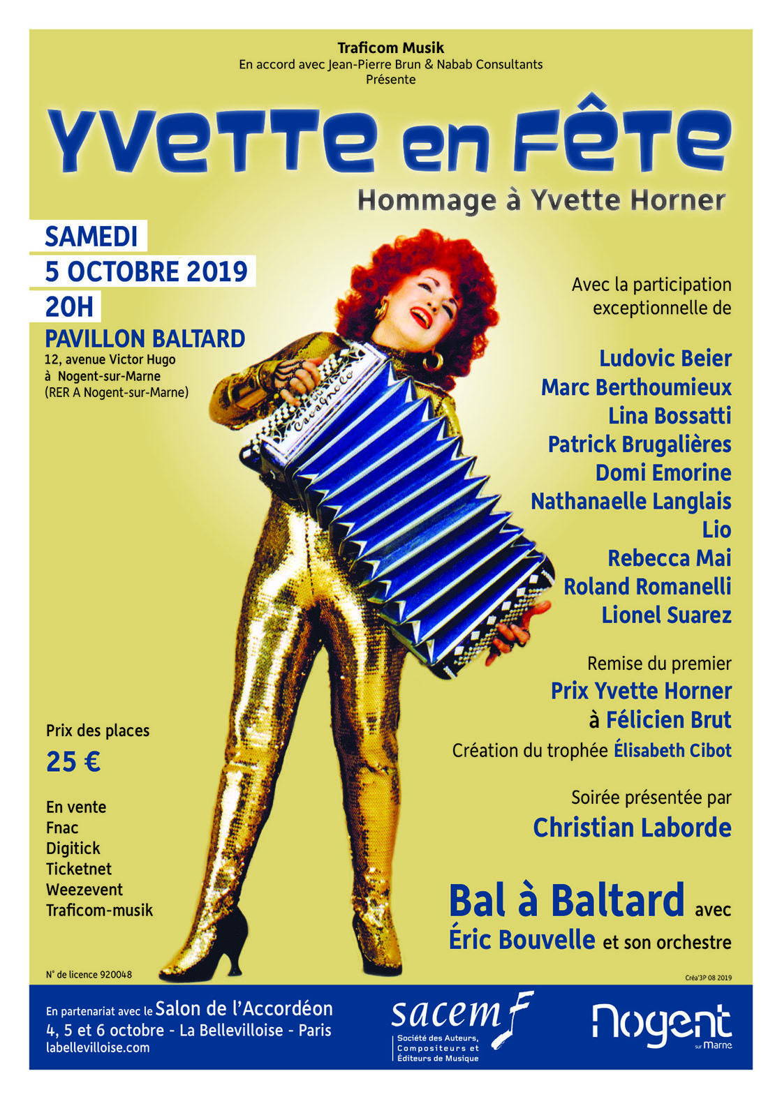 Yvette en Fête se déroulera en totale coordination avec le Salon de l’Accordéon qui se tiendra à la Bellevilloise du vendredi 4 au dimanche 6 octobre. Les tickets vendus à la Bellevilloise pendant le Salon bénéficieront d’une réduction de 20 %